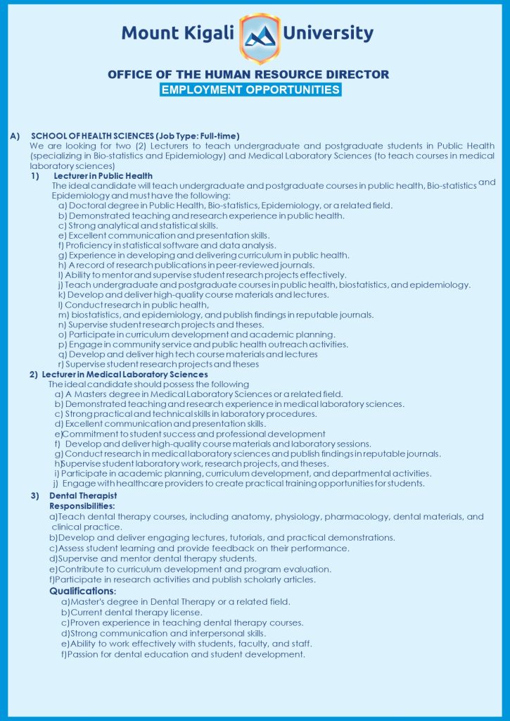 16 JOB POSITIONS at Mount Kigali University (MKU): Deadline: 30/09/2024