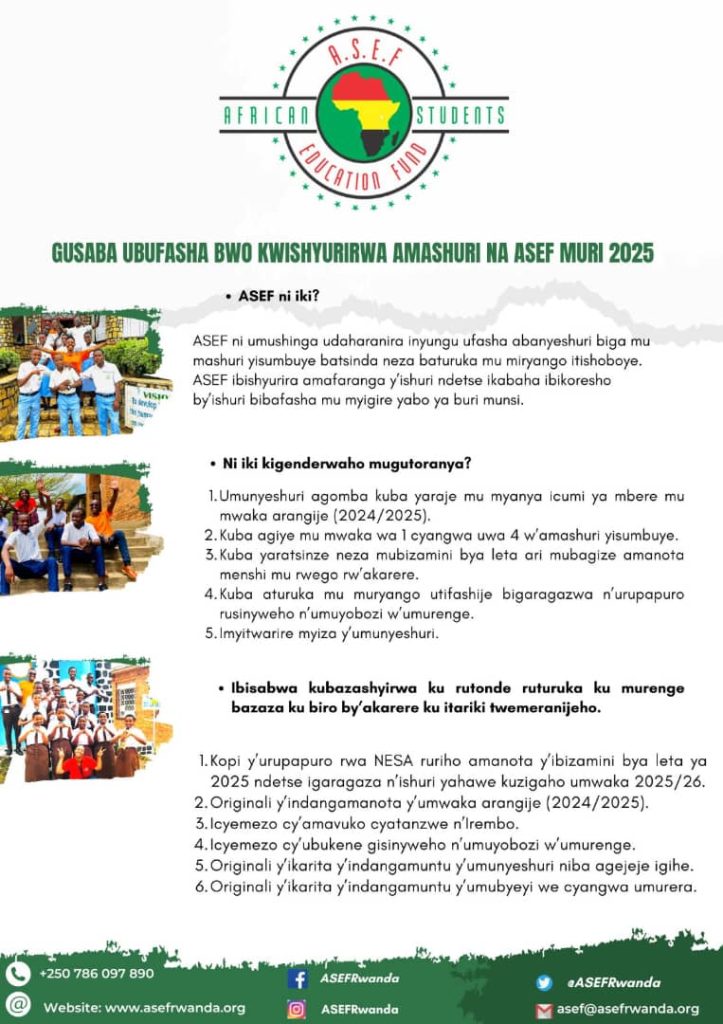 ASEF:Amahirwe yo kwishurirwa ishuri kubanyeshuri bagiye kwiga s1and s4
