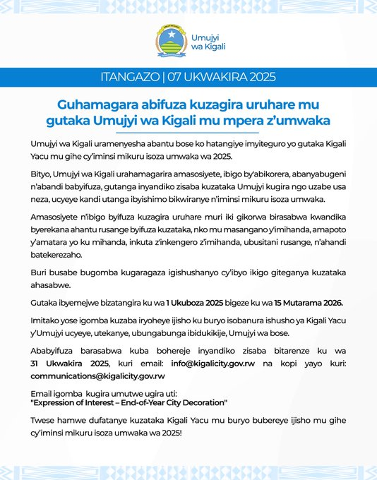 Itangazo ku bifuza kuzagira uruhare mu gutaka Kigali Yacu mu mpera z’umwaka.