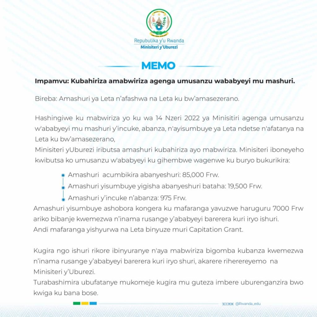 ITANGAZO RIJYENEWE ABABYEYI ,ABAYOBOZI B AMASHURI ,ABAREZI NA ABANYESHURI BOSE