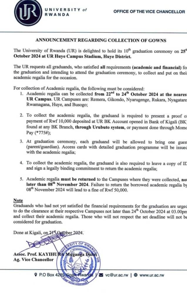HomeUncategorized Uncategorized itangazo rijyenewe abantu bose bazajya muri graduations 25/10/2024 By CEO October 22, 2024 0 82 FacebookTwitterPinterestWhatsApp itangazo rijyenewe abantu bose bazajya muri graduations 25/10/2024 Share FacebookTwitterPinterestWhatsApp Previous articleMu Rwanda hashyizweho ishuri ryigisha abashoferi batwara abantuNext article13 Job Positions at Capital Market Authority (CMA) : Deadline: 01-11-2024 CEO Related Articles Uncategorized REB Accountability measures for non-compliance with mandatory English proficiency training NESA PAST PAPERS Rwanda S1, S2 and S3 Term 2 District Past Papers Uncategorized Master the CBC: Rwanda Primary 1–6 Term 2 District Past Papers LEAVE A REPLY Cancel reply Comment: Please enter your comment! Name:* Please enter your name here Email:* You have entered an incorrect email address! Please enter your email address here Website: Save my name, email, and website in this browser for the next time I comment. Stay Connected0FansLike0FollowersFollow0SubscribersSubscribe Latest Articles Uncategorized REB Accountability measures for non-compliance with mandatory English proficiency training NESA PAST PAPERS Rwanda S1, S2 and S3 Term 2 District Past Papers Uncategorized Master the CBC: Rwanda Primary 1–6 Term 2 District Past Papers EDUCATION REB Urutonde rw’Abayobozi b’amashuri n’abayobozi bungirije bagirwa inama yo kujya mu kiruhuko cy’izabukuru. EDUCATION REB (All Districts) List of DOS, DOD and HeadTeachers reassigned to teaching positions and placed school Load more