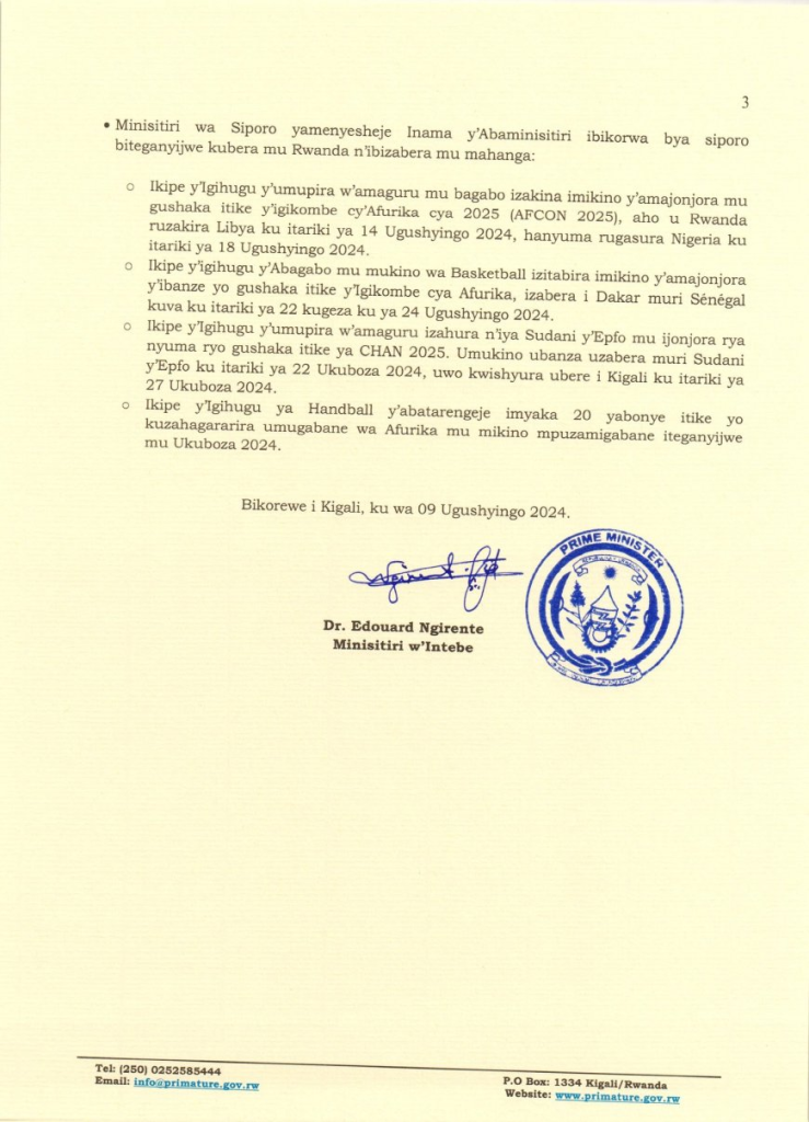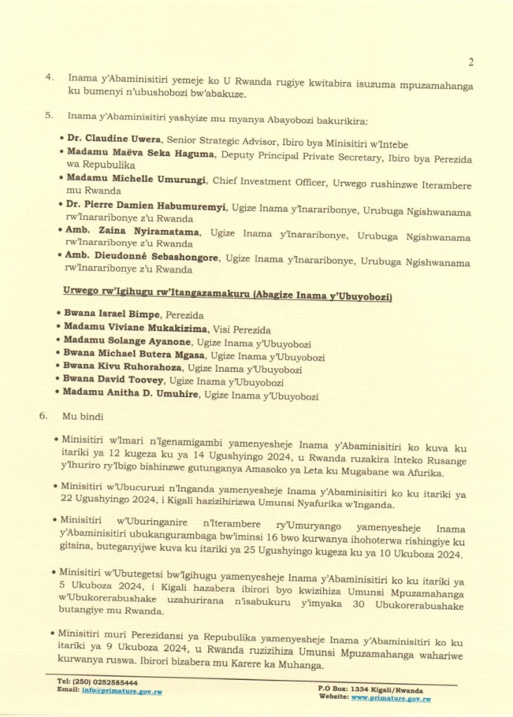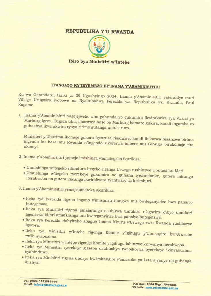 Itangazo ry’Ibyemezo by’Inama y’Abaminisitiri yo ku wa 09 Ugushyingo 2024