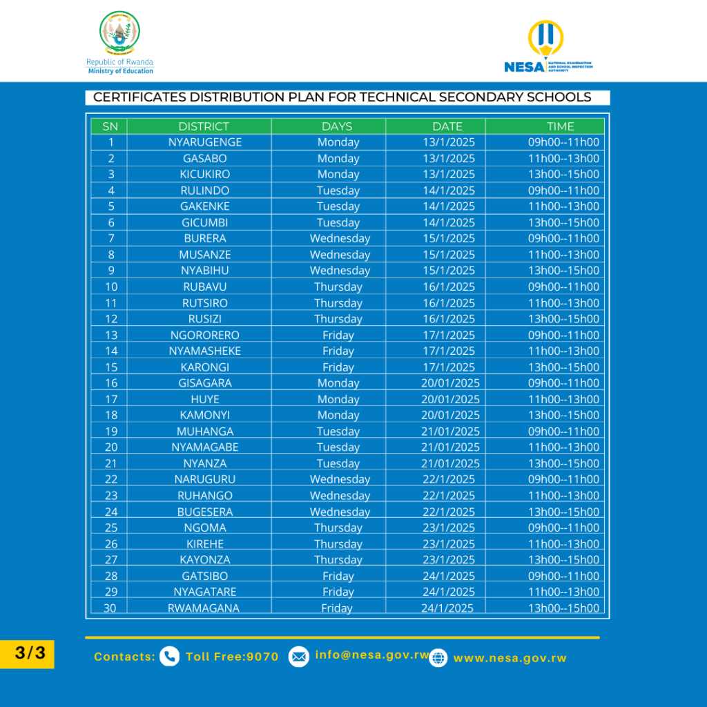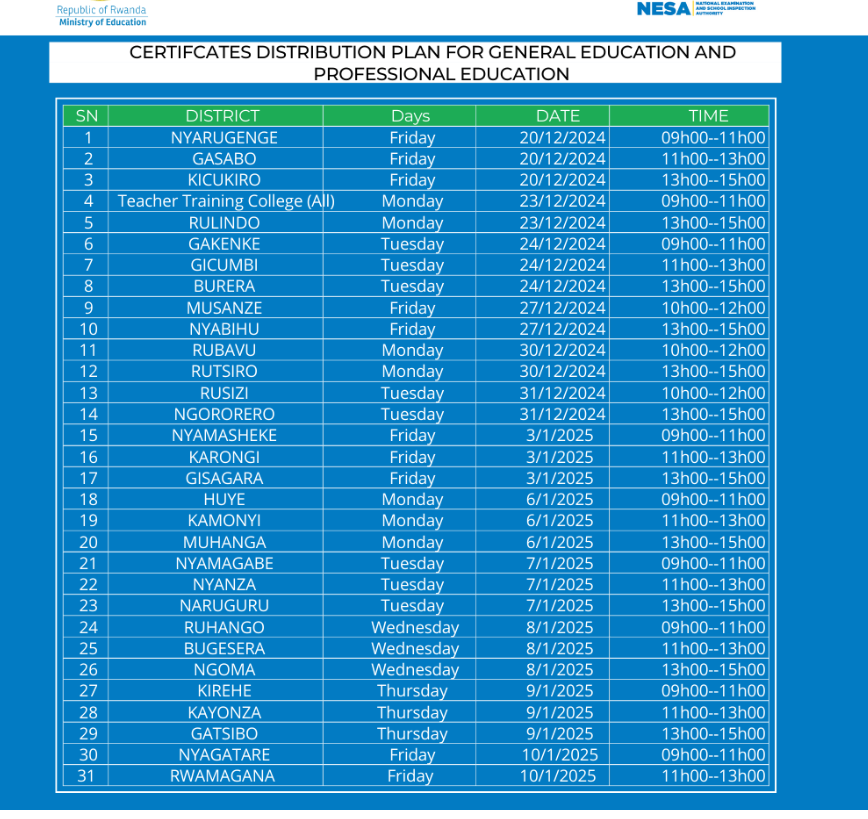 Itangazo ryihutirwa rireba abayobozi b’amashuri n’abanyeshuri barangije kwiga amashuri yisumbuye /Gahunda yo gutanga impamyabushobozi z’abanyeshuri