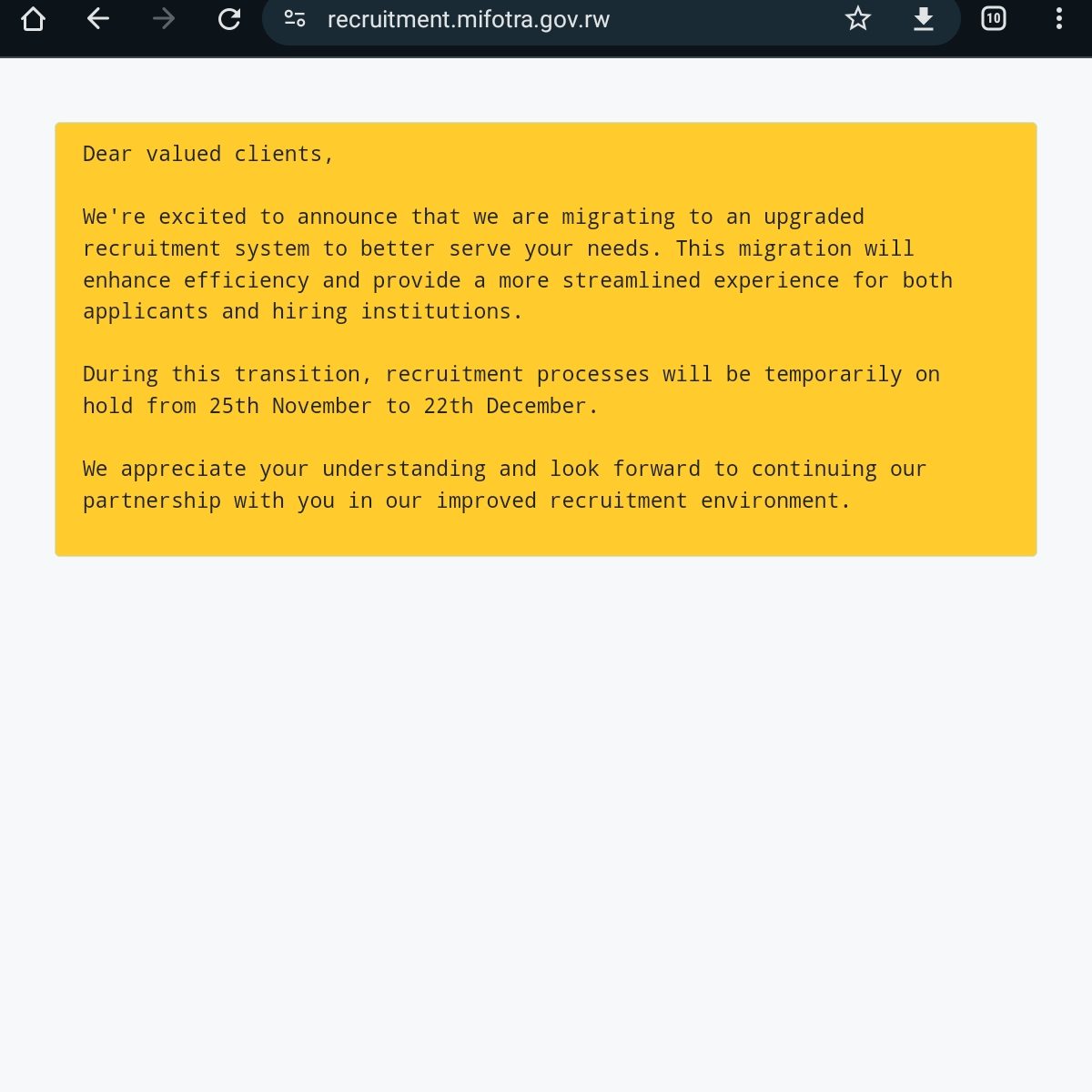 MIFOTRA Announcement to all e-recruitment portal users.
