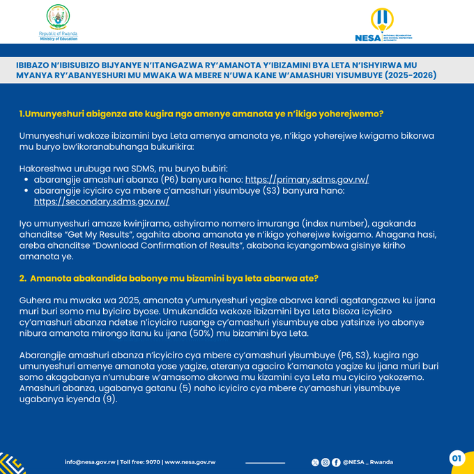 NESA :Ni ibiki bishingirwaho kugira ngo umunyeshuri ahindurirwe ishuri mu gihe yajuriye