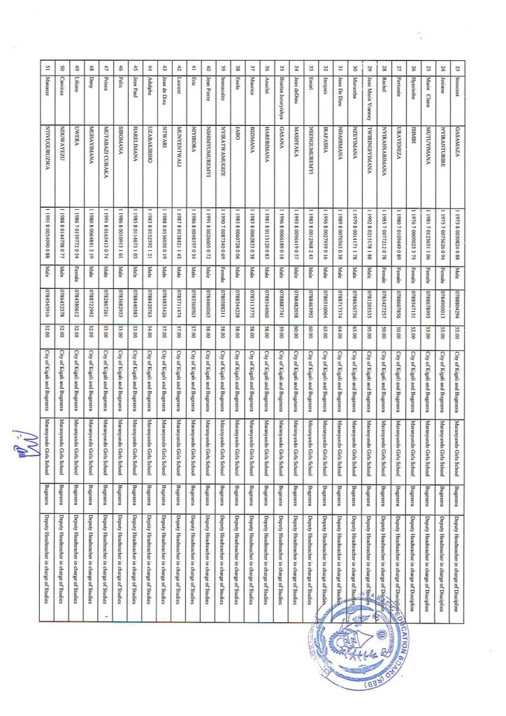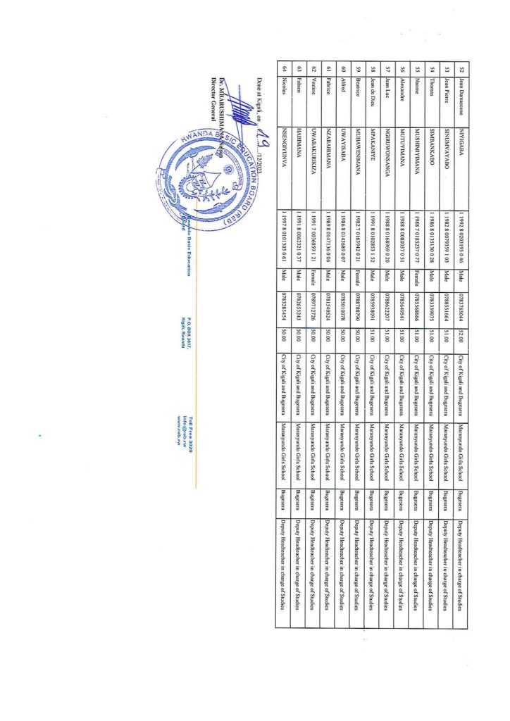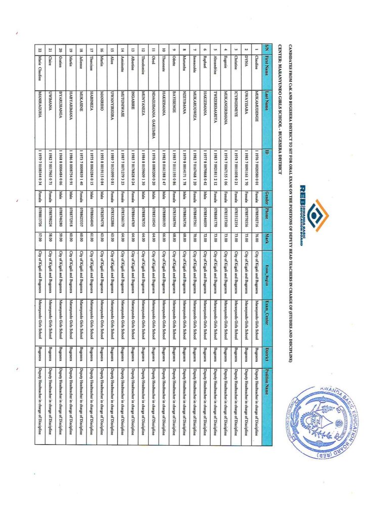REB KIGALI CITY ALL DISTRICTS and BUGESERA DISTRICT LIST OF ALL CANDIDATES TO SIT FOR EXAMS.