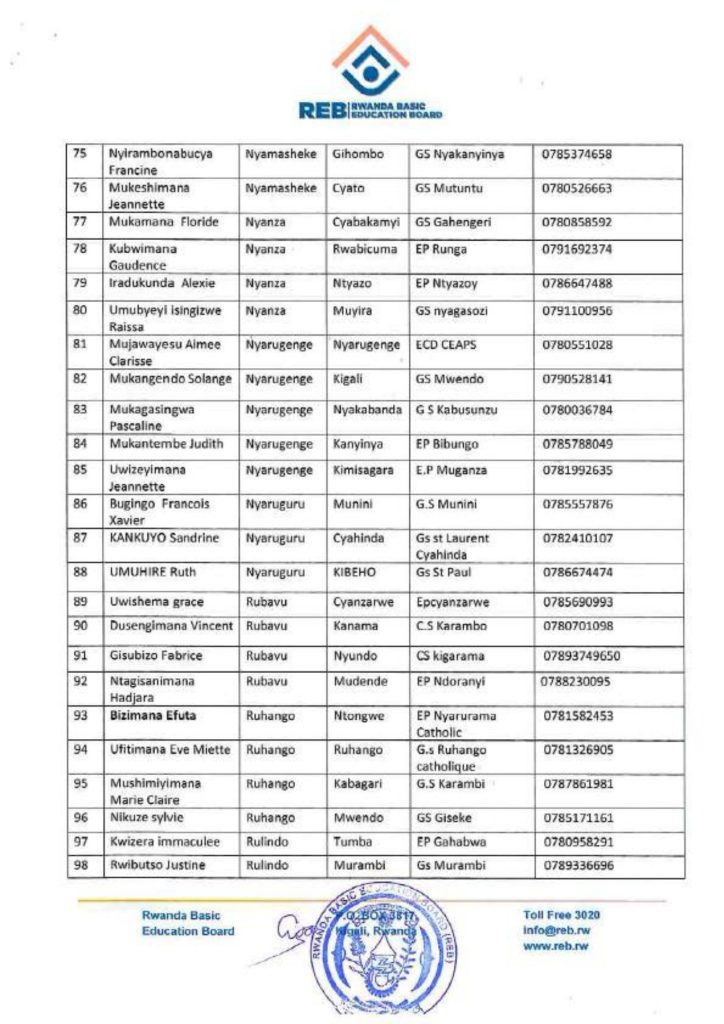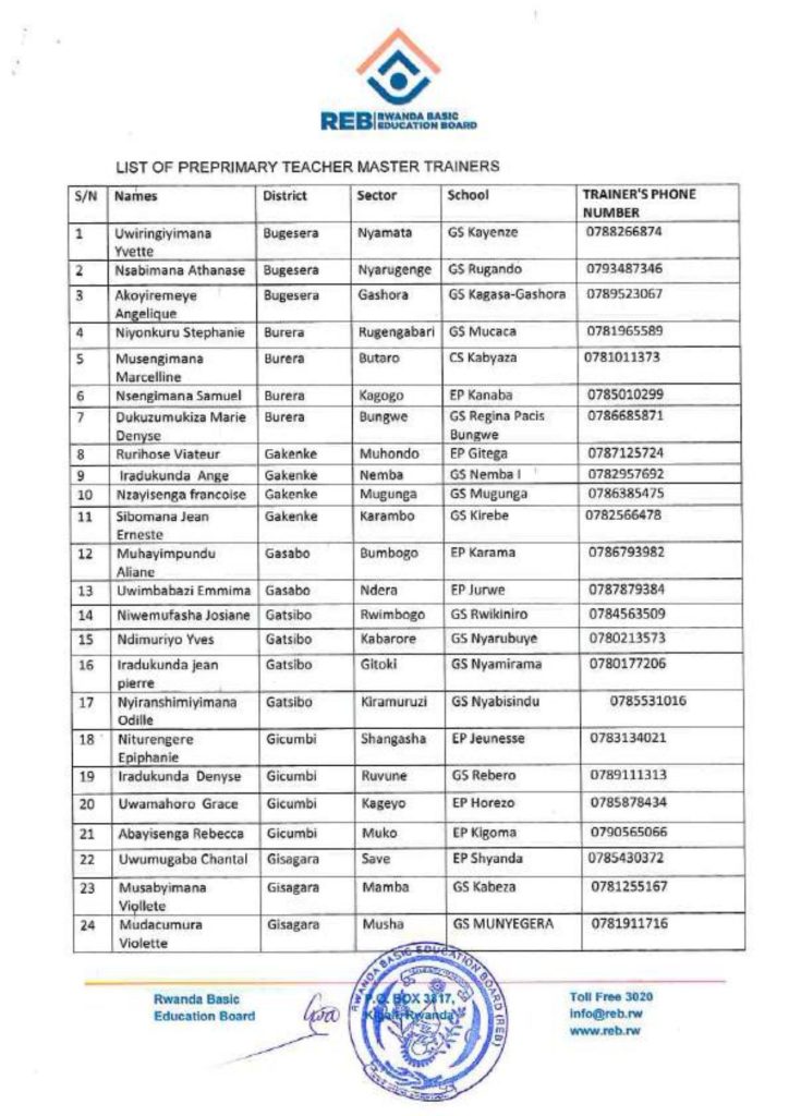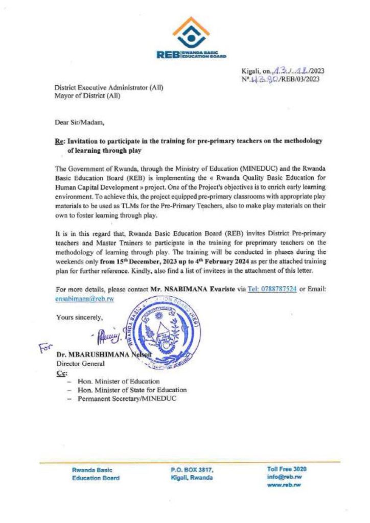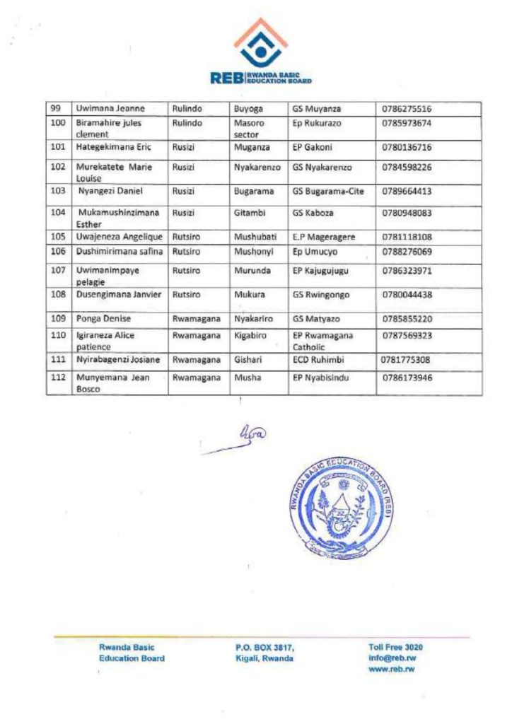 HomeRWANDAANNOUNCEMENTS ANNOUNCEMENTS REB LISTS OF TEACHERS TO PARTICIPATE IN THE TRAINING ON THE METHODOLOGY OF LEARNING. By CEO December 15, 2023 0 388 FacebookTwitterPinterestWhatsApp REB LISTS OF TEACHERS TO PARTICIPATE IN THE TRAINING ON THE METHODOLOGY OF LEARNING. REB LISTS OF TEACHERS TO PARTICIPATE IN THE TRAINING ON THE METHODOLOGY OF LEARNING. REB LISTS OF TEACHERS TO PARTICIPATE IN THE TRAINING ON THE METHODOLOGY OF LEARNING. hy hy y Share FacebookTwitterPinterestWhatsApp Previous articleHastings wa Netflix yahaye u Rwanda miliyoni 50$ yo kugeza ’Smartphones’ ku barimuNext articleCALL FOR THE SCHOLARSHIPS APPLICATION MIDWIFERY UNDERGRADUATE PROGRAM. CEO Related Articles Uncategorized REB Accountability measures for non-compliance with mandatory English proficiency training NESA PAST PAPERS Rwanda S1, S2 and S3 Term 2 District Past Papers Uncategorized Master the CBC: Rwanda Primary 1–6 Term 2 District Past Papers LEAVE A REPLY Cancel reply Comment: Please enter your comment! Name:* Please enter your name here Email:* You have entered an incorrect email address! Please enter your email address here Website: Save my name, email, and website in this browser for the next time I comment. Stay Connected0FansLike0FollowersFollow0SubscribersSubscribe Latest Articles Uncategorized REB Accountability measures for non-compliance with mandatory English proficiency training NESA PAST PAPERS Rwanda S1, S2 and S3 Term 2 District Past Papers Uncategorized Master the CBC: Rwanda Primary 1–6 Term 2 District Past Papers EDUCATION REB Urutonde rw’Abayobozi b’amashuri n’abayobozi bungirije bagirwa inama yo kujya mu kiruhuko cy’izabukuru. EDUCATION REB (All Districts) List of DOS, DOD and HeadTeachers reassigned to teaching positions and placed school Load more