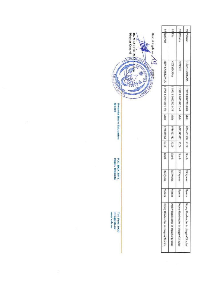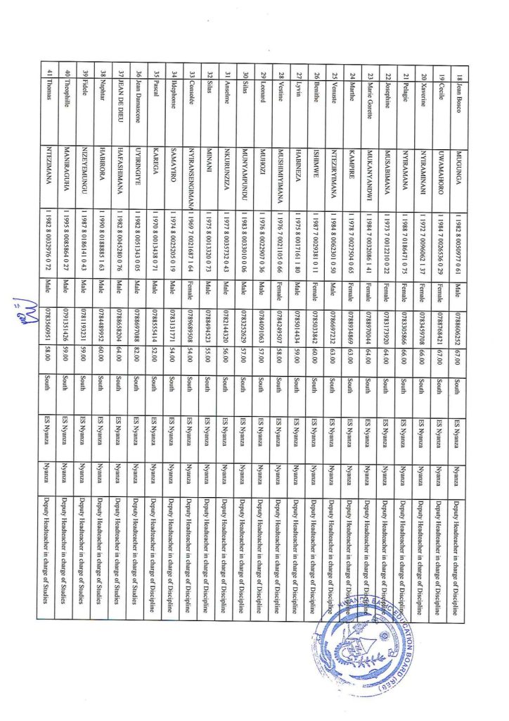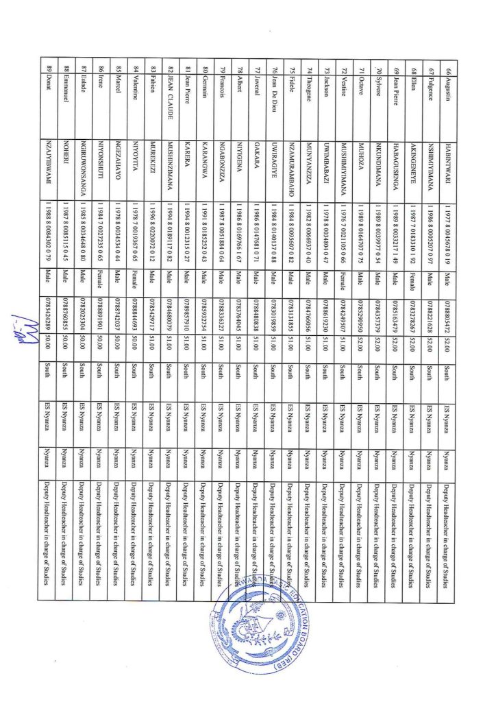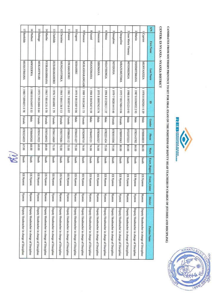 REB SOUTHERN PROVINCE ALL DISTRICTS LIST OF CANDIDATES TO SIT FOR EXAMS.